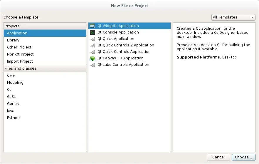 Seguiremos los pasos estándar para la creación de un proyecto en QT, seleccionando crear un nuevo proyecto.
