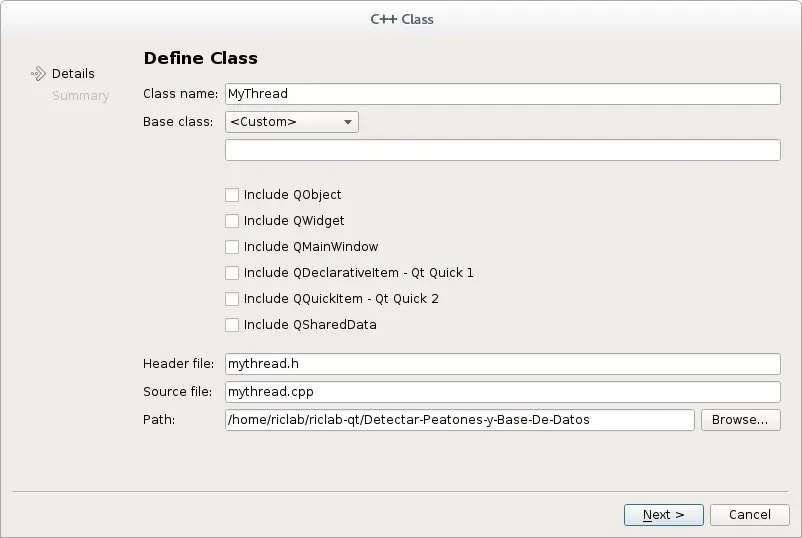 En mi caso el archivo en cuestión Detectar-Peatones-y-Base-De-Datos.pro queda de esta forma:
